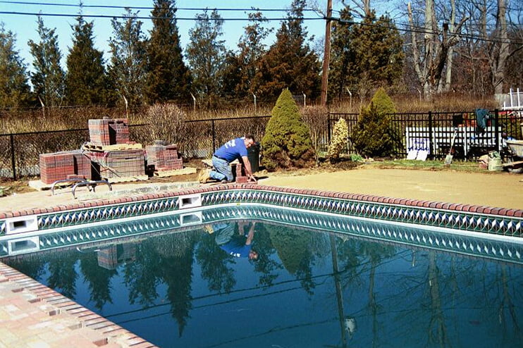 After the sand is swept, the pavers are washed and cleaned revealing another beautiful paver poolscape.
